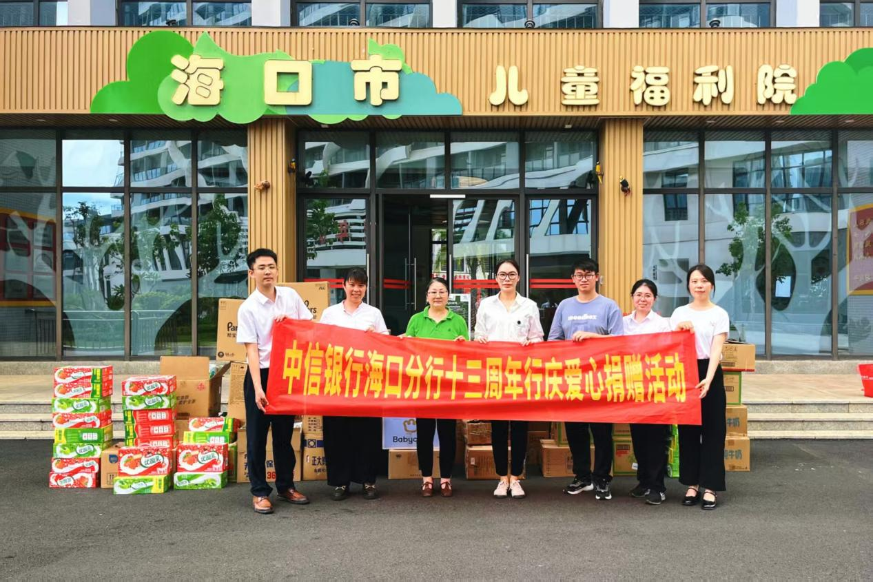 在中信銀行??诜中惺苣晷袘c和國(guó)際“六一”兒童節(jié)來臨之際,該行組織開展了“迎行慶,獻(xiàn)愛心”主題捐贈(zèng)活動(dòng),在分行團(tuán)委的號(hào)召下,全行員工主動(dòng)響應(yīng)、各單位積極組織,通過物資捐贈(zèng)與金融知識(shí)普及相結(jié)合的形式,為??谑猩鐣?huì)福利院的兒童及青少年送去節(jié)日的關(guān)愛與支持,以實(shí)際行動(dòng)踐行金融機(jī)構(gòu)的社會(huì)責(zé)任。